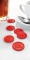Rode waardemuntjes "Drankjes" van stevig kunststof met een hoogwaardige reliëfstempeling. Op de voorkant is de letter "G" te zien en op de achterkant een dranksymbool. Het betalingsverkeer kan met deze muntjes eenvoudig en hygiënisch worden afgehandeld. Ze kunnen worden gereinigd, zijn altijd weer opnieuw te gebruiken en daardoor milieuvriendelijk en kostenbesparend. Een veelzijdige inzet in restaurants, kantines, bij festivals of verenigingsfeesten is door het stevige materiaal mogelijk. Een waardemuntje heeft een doorsnee van 25 mm. Een verpakking bevat 100 stuks. Er zijn uitvoeringen in andere kleuren en met andere reliëfmotieven.