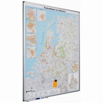 Landkaart Postcode NL op een magneethoudend en droog-uitwisbaar bord 120x100cm.